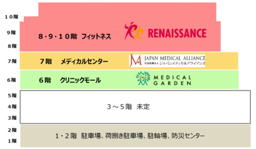 6階~10階はフィットネスジムや検診、クリニックの機能を有する複合施設となります。